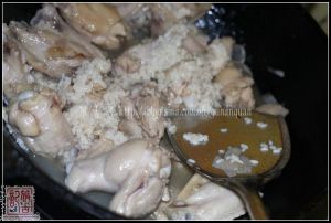 一次性加入醪糟,大火滚开,加入少许老抽,不用上色太重,中火加盖烧15分钟左右