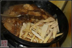 加入春笋,点入老抽和盐,再烧5-8分钟即可