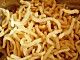 将切好的面条入烧六成热油锅炸至金黄,沥干油。