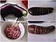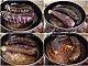 茄子洗净,掰去蒂。(图一),用刀在茄子上面切小口,不要切断,留三分之一至四分之一相连,中间厚度在0.5厘米左右(图二)。猪肉馅买回来,加入生抽,味精,香油、盐少许调味。(图三)将猪肉馅塞入茄子的切口部分,就如同做茄盒一样。塞满之后是不是像一条毛毛虫啊?(图四)