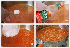 倒入打好的番茄泥,加入一小勺盐,炒匀;