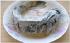 鲤鱼收拾干净后,沥干水,在鱼身两面个2.5厘米各斜切一刀(先立切1厘米深,再平切2厘米 深),用胡椒粉、生抽和少许盐略腌