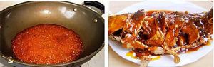 炒锅内留少许油,放入葱花、姜末、蒜末爆香,再倒入调好的汁,加少许湿淀粉收浓起锅浇在鱼身上即可