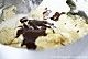 将黑巧克力块切粹,隔水加热,搅拌至融化。