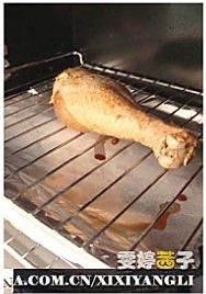 大家可根据鸡腿大小决定时间,温度。因为这只鸡腿将近500克,我选择180度,正面先烤20分钟。