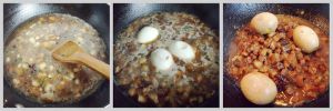煮沸后转小火将煮熟的鸡蛋放入,煮至汤汁变浓,出锅前视口味再酌情加盐调味。