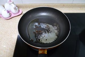 锅里放入油,然后放入花椒粒,炸香后,捞出。