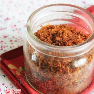 不停翻炒约30分钟,肉丝越来越干并蓬松,颜色金黄即可