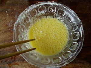 然后把蛋液均匀地浇在面汤中,搅拌均匀,加鸡精,淋入香油搅拌一下关火。