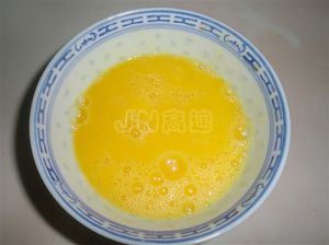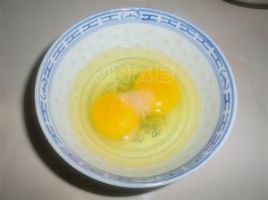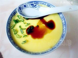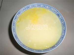 然后按鸡蛋和圆骨汤以1比1的比例加入高汤搅匀。