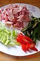 五花肉切片;青红美人椒切斜段;大葱切片。