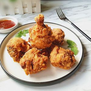 将鸡翅根放入裹炸粉中滚一圈、拍一拍