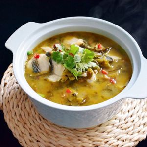 先将酸菜鱼腌料包和料酒倒入鱼片中腌制半小时