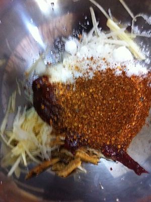 梨丝和苹果丝混合白糖辣椒面辣椒酱小鱼干