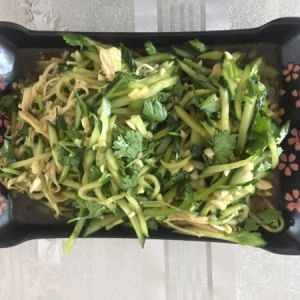 黄瓜,青椒切丝备用。