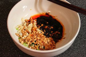 加入甜酱油,咸酱油,辣椒酱,香油,醋等调味料