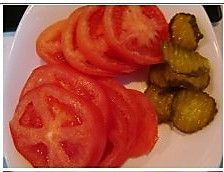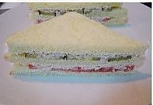第一片面包片上面薄上金枪鱼酱,再放上西红柿片。第二片面包盖在上面,再薄上金枪鱼酱,再放上酸黄瓜片。再用第三片面包覆盖