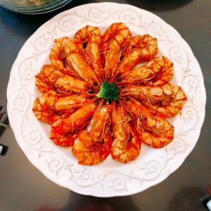 热锅冷油下姜片,蒜片,煸香后放大虾,颜色变红后放入一碗料汁(糖,料酒,生抽,盐,黑胡椒粉),改中火盖盖儿一分钟后虾翻面,再烧一分钟,大火收汁,就大功告成啦!