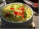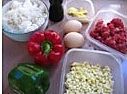 青红椒分开洗净切粒备用;鸡蛋打散,加入2勺水和适量盐搅匀备用;马苏里拉芝士或切成粒,或用刨刀刨成丝备用。