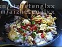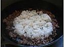米饭表面盖上马苏里拉芝士,进烤箱,用200度烤至表面芝士融化即可。