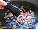 锅中加入黄油,倒入牛肉末炒至变色,加入适量黑胡椒炒匀。