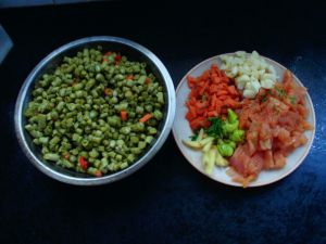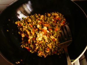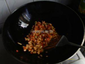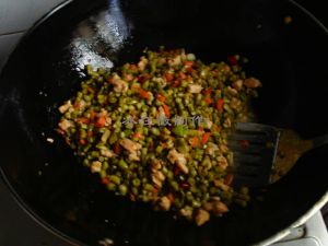 倒入酸豇豆丁翻炒,焖锅个三四分钟。