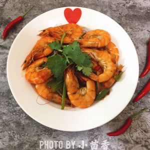 没有加水,全程一直大火翻炒,加入适量的糖和盐调味,虾全部变红,盖上锅盖闷一会即可。