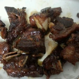 锅里倒入一点油。小火熬冰糖,至冰糖变褐色时,将排骨倒入翻炒,倒入少许老抽调色调味,加水继续炖煮,排骨入色入味后即可出锅。