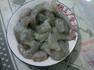 甜虾剥成虾仁,剔除虾线。然后洗净沥干水分。