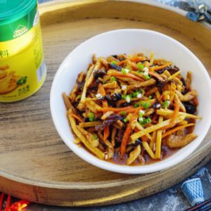 里脊肉切丝,黑木耳,冬笋,胡萝卜切丝,用生抽,老抽,糖,醋,淀粉,调制成鱼香汁。