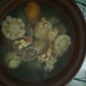 把玉米,排骨,红萝卜全放在砂锅里,把按钮调到高,煮一个小时左右