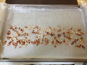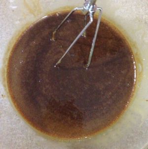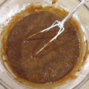 取打发好的三分之一的蛋白与蛋黄面糊快速翻拌混合,再倒回蛋白的盆中翻拌均匀。倒入烤盘,再用刮板刮平表面送入预热180度(350华氏度)的烤箱烤16分钟