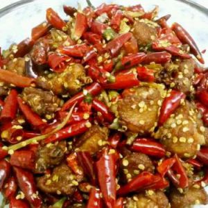 放入炸好的鸡块快速翻炒,放料酒盐糖适量,煸炒到没有一点水气出锅!家里没有芝麻,有的话撒点更好看好吃
