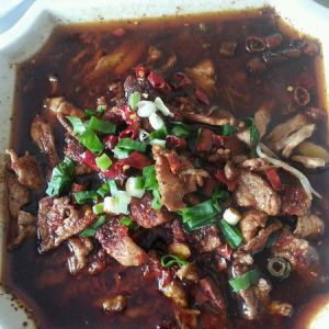 最后一步了~锅洗净~放适量的油~烧致七分熟,把刚才做好的肉上面放适量干辣椒粉~花椒粉~干辣椒段~最后把烧好的油浇在上面~呵呵~一份香辣可口的水煮肉片就搞定了!哦~别忘了把碗四周溅起的油花擦干净哦!