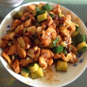 1.锅中倒入适量油先将鸡块炒出盛入碗中备用。2.锅中倒入适量油爆香葱段、辣椒、姜片。3.接着倒入黄瓜炒1分钟左右时间。4.接着倒入鸡块,花生米翻炒。5.将调配好的汁倒入锅中快速翻炒并盛出。