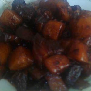 焖至水变稠的时候大火收汁,放入鸡精便可出锅