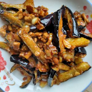 放入黄豆酱,加少许水,让后放入炸好的茄子