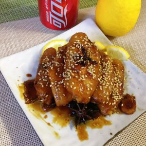 平底锅放少量油,放入鸡翅,煎至两面微黄,同时放入生姜与八角