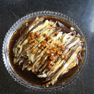 最后倒进刚撕成条的茄子里,放进冰箱冷冻五分钟口感更佳!