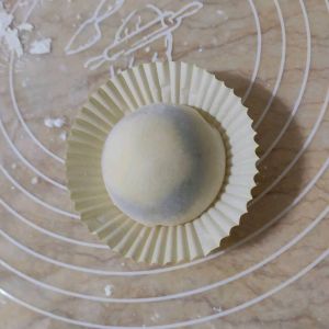 第十步:榴莲味雪梅娘,薄皮肉加入奶油,榴莲泥,再加奶油,包好就行了。