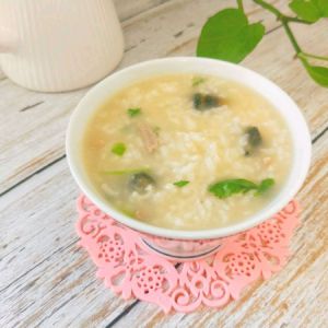 用筷子夹起一点肉丝在粥里迅速滑散成一根根的状态,直到下完所有肉丝