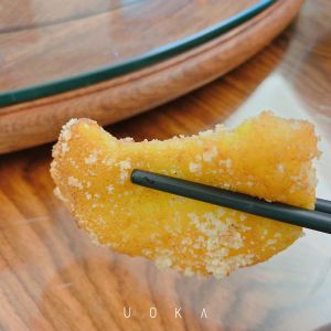 蒸熟后趁热撒上白糖,用勺子碾碎