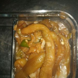 起锅烧油爆锅:放入蒜末 葱花 酱油 豆瓣酱一点点,放入茄子翻炒均匀并且茄子软后,加入水放入青辣椒,收汁即可