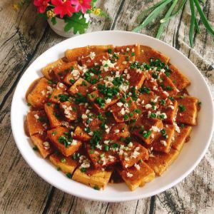 炸至豆腐表面金黄色,干巴巴的样子,捞出沥干油分备用!