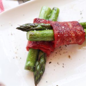 锅中烧水加入适量盐和油,水开后下入芦笋抄烫一分半到两分钟左右~
