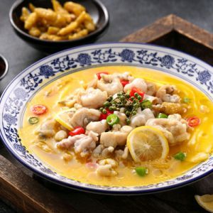 配料过水放入容器里,田鸡焯熟放在配料上面