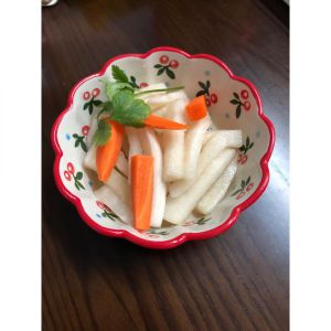 切几根同等大小的胡萝卜放进去一起腌制,到时候摆盘好看些。放入冰箱24小时后就可以吃了,两天后口味更佳
