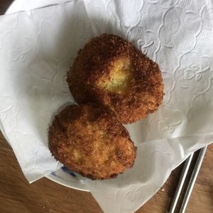 把土豆泥弄成饼,放入芝士(不喜欢的可以不加,我就做了一个,其他没加)然后裹起来,再压成饼