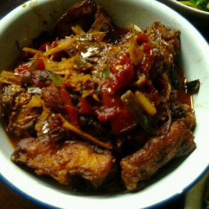 1.将收拾好的鱼切块,放入适当寸葱,姜丝,片蒜,少许酱油,食盐腌制半小时左右;2.将腌制好的鱼放入油锅里炸至皮脆变黄即可起锅;3将腌制的佐料下锅小炒,并加入西红柿,豆瓣酱,适量水,油辣子,白糖,醋和少许食盐,酱油,味道以个人口味为主;