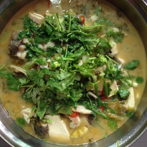 将鱼头、鱼片分别切好,鱼片用生粉、生抽腌一小会